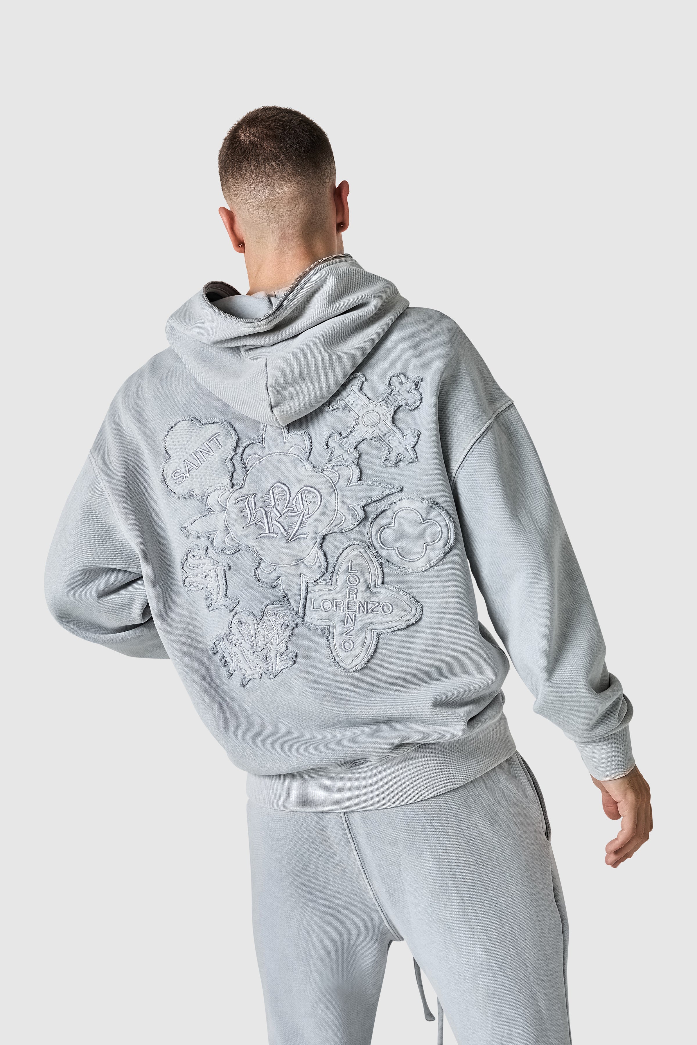 The Icon Hood, as part of our Autumn/Winter collection. Designed with a relaxed, drop-shoulder fit and raw edge applique detailing.