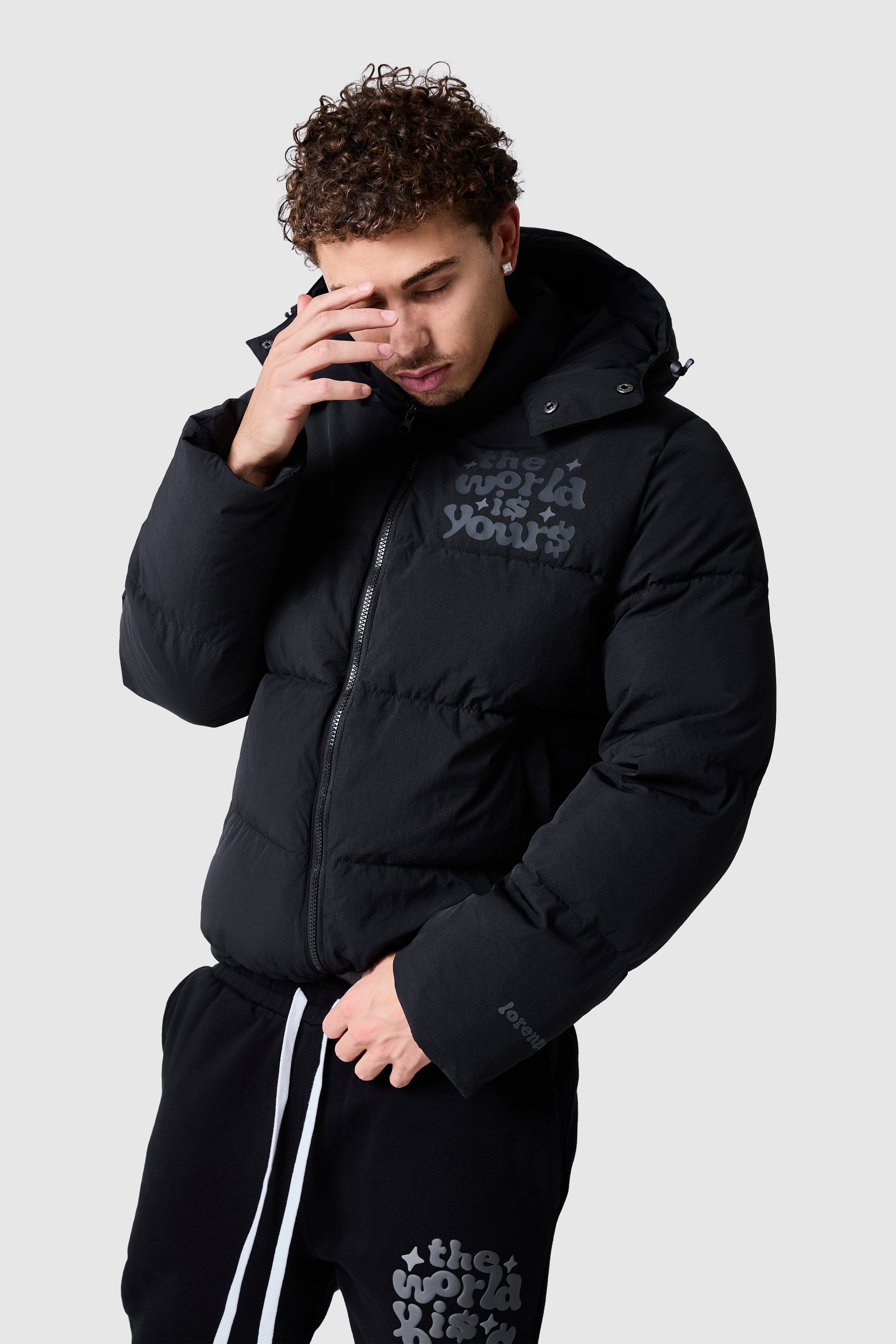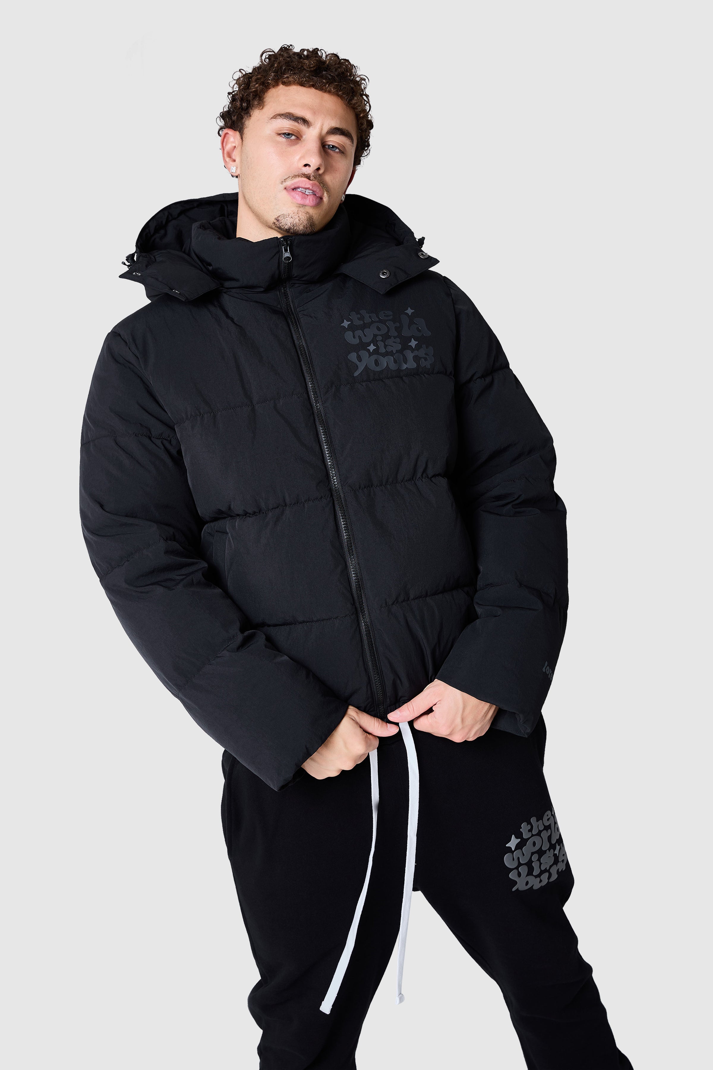Introducing the World Is Yours Puffer Jacket, a branded puffer designed for the cold. Combining functionality and style, this jacket takes inspiration from outdoor exploration to enhance your wardrobe this winter.