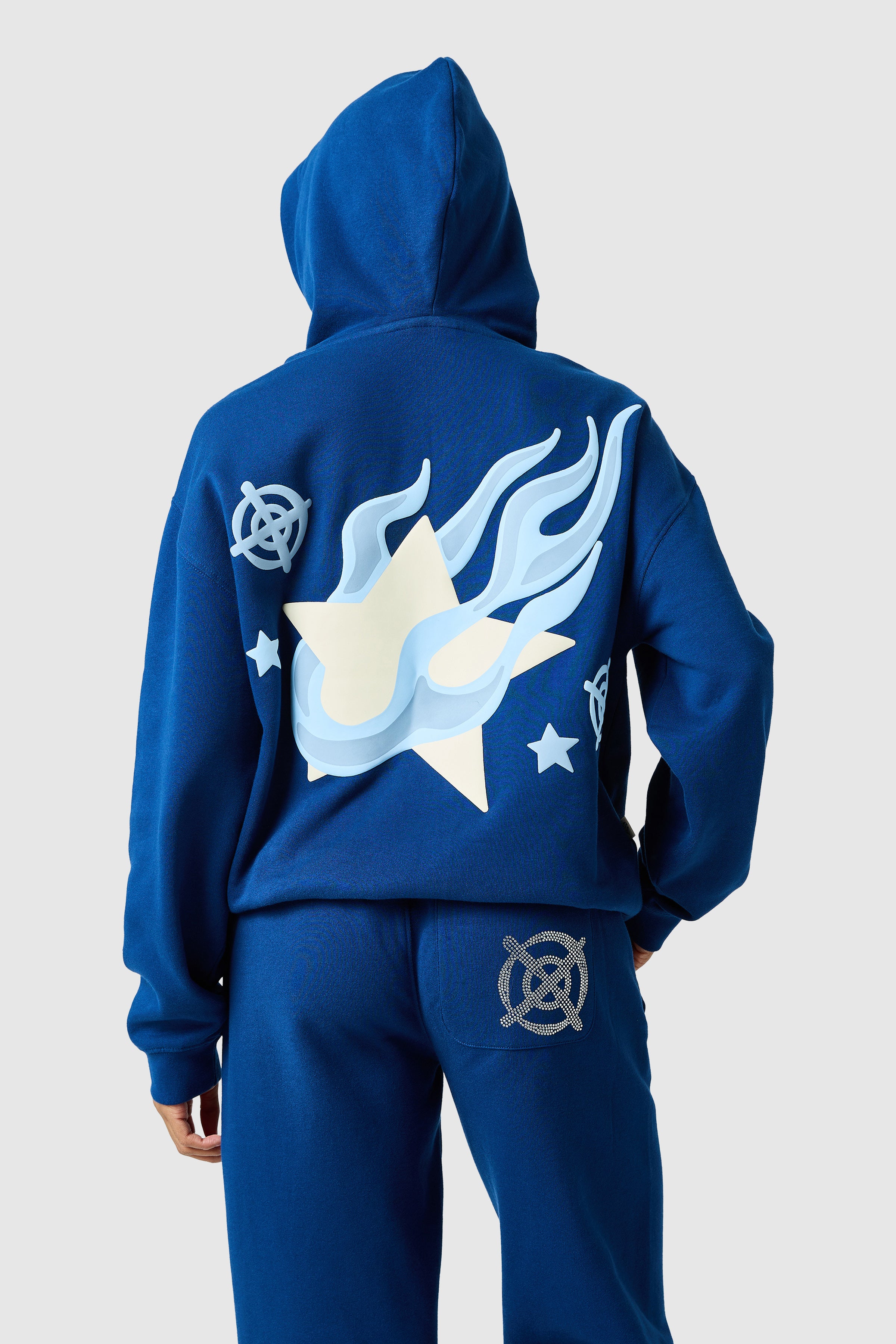 Introducing the Shoot For The Stars Hood. Featuring a bold graphic puff print and ribbed cuffs and hem, it pairs perfectly with the matching fleece jogger for a complete look.
